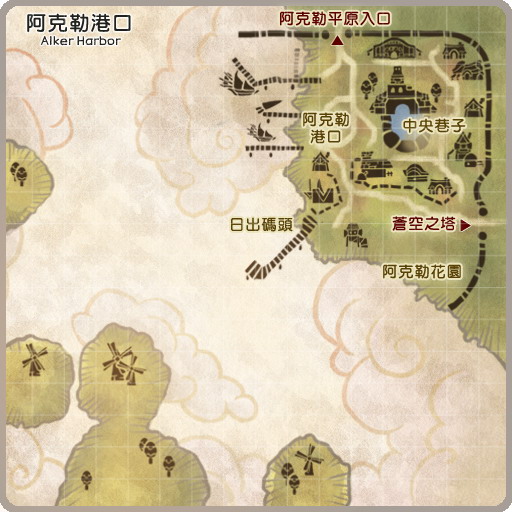 阿克勒港口是玩家进入游戏后会最先到达的村庄,在这个村庄中有着基本的杂货商、防具商、武器商,可以让玩家在此进行装备的整顿以利之后的战斗。