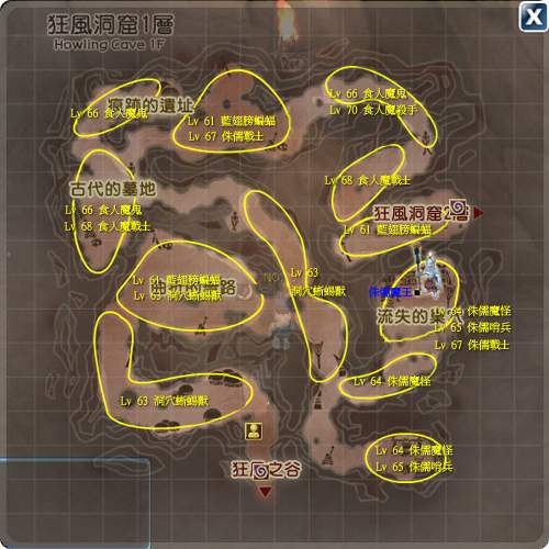 | 食人魔战士 | 68 | 人型 | 近距离 | 主动 | 狂风洞窟1层、狂风洞窟2层 | | |