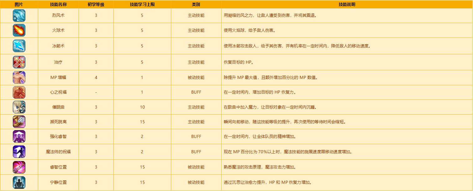 学习利用自然之力和精灵之力的各种辅助魔法主动技能。