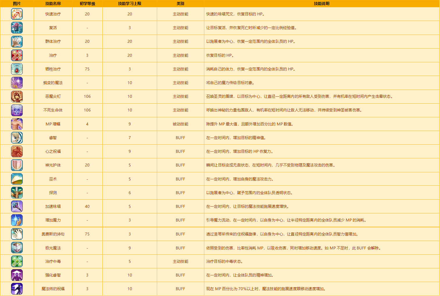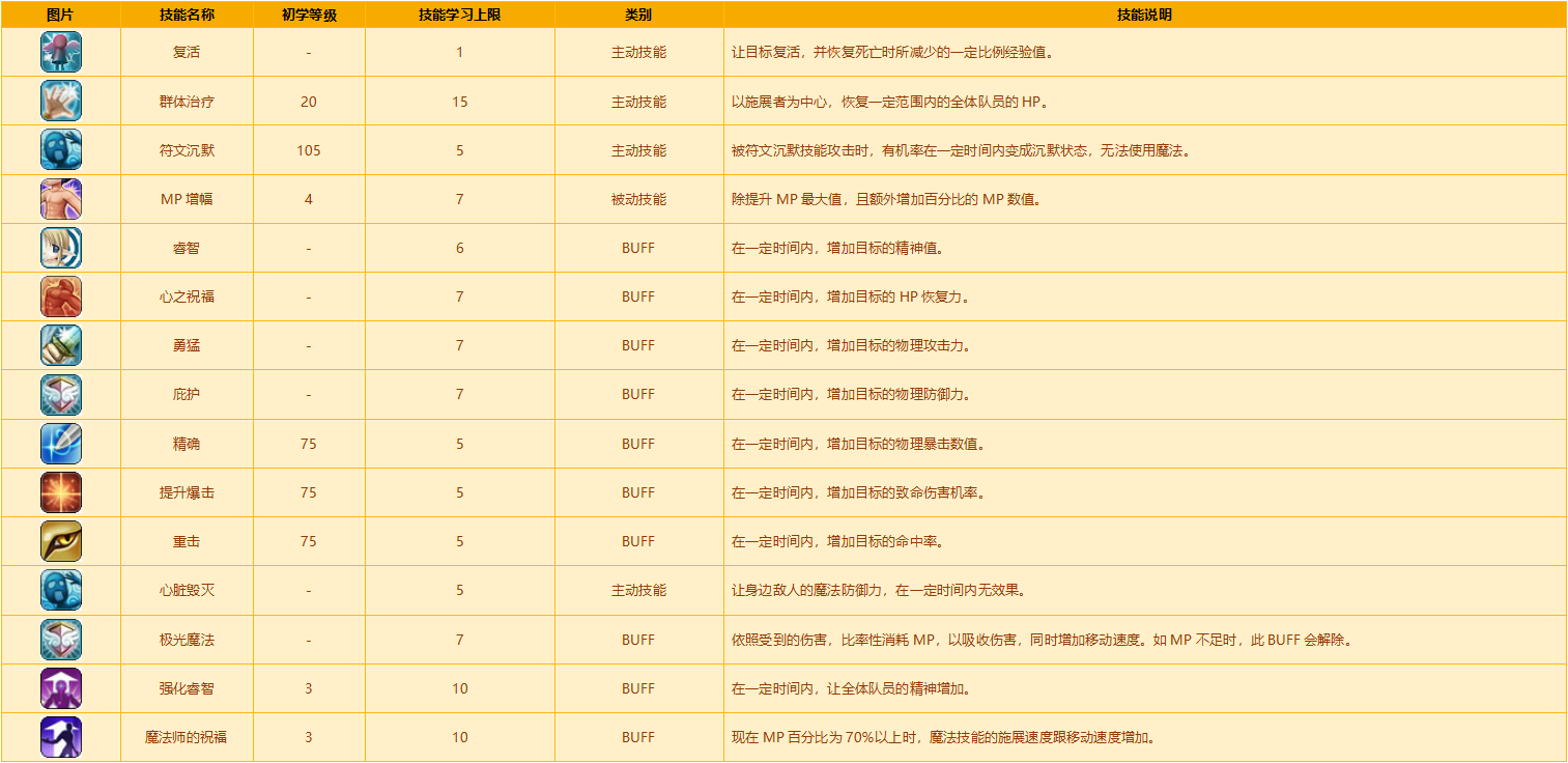 2.可使用所有治疗型魔法,学习最高水准的复活魔法。