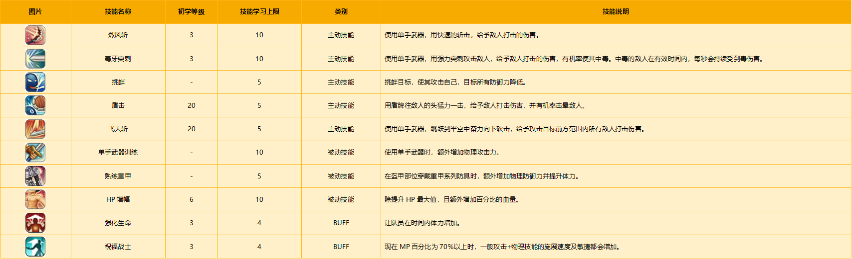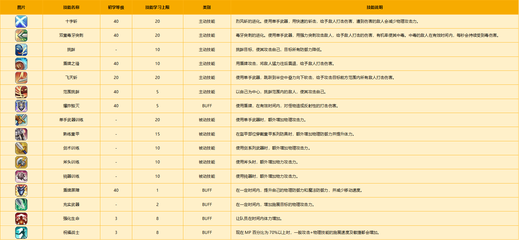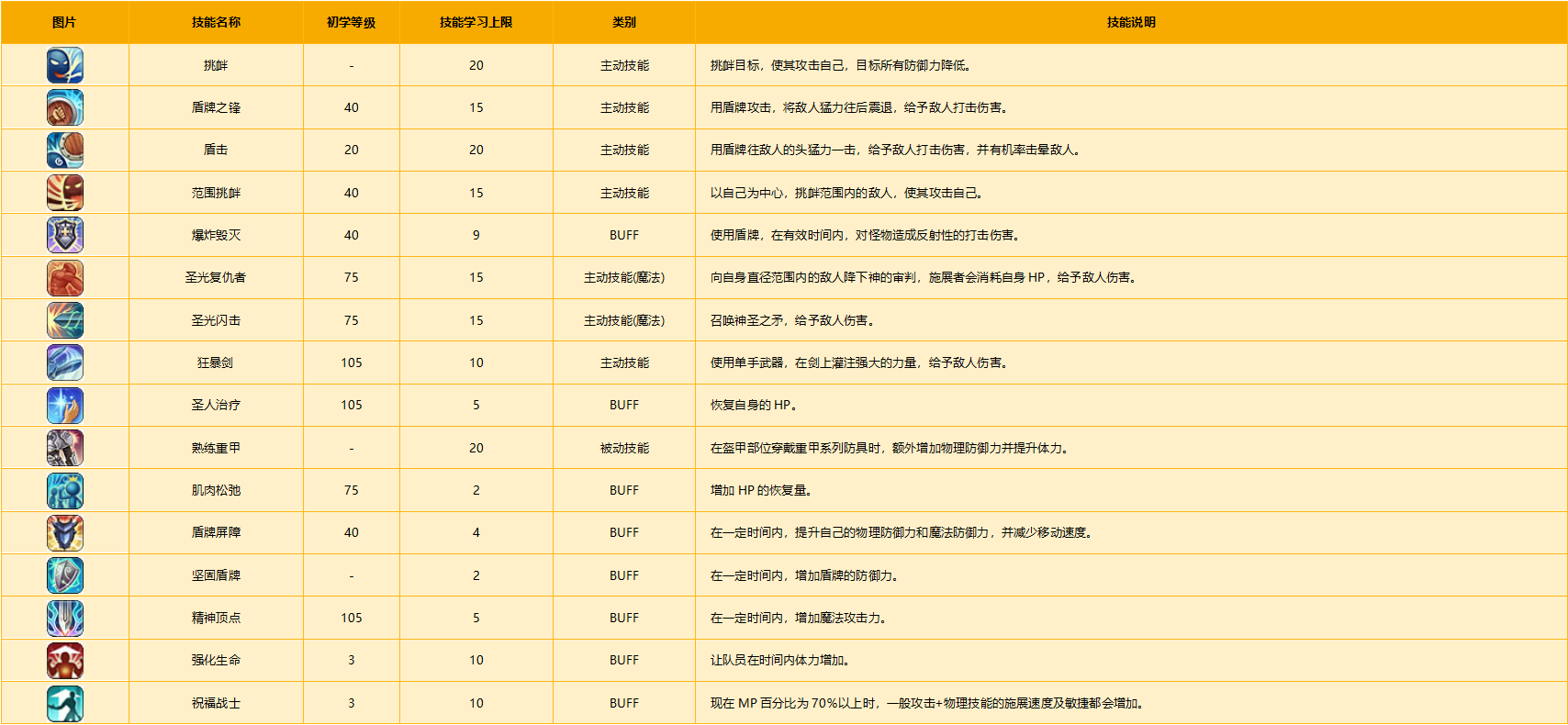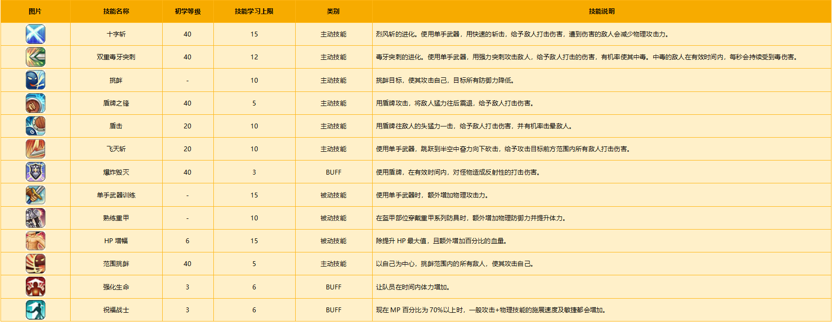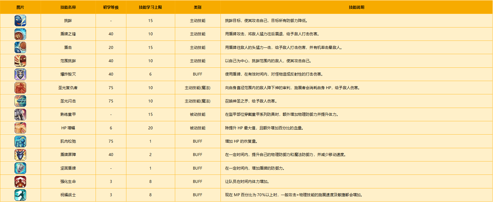 是最初学习盾牌(防御)相关的主动与被动技能的职业。