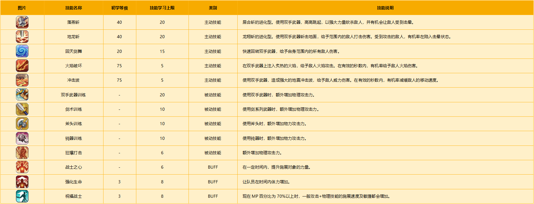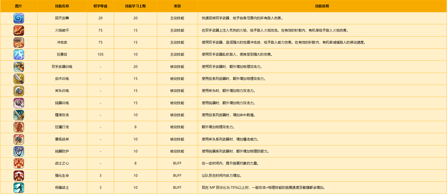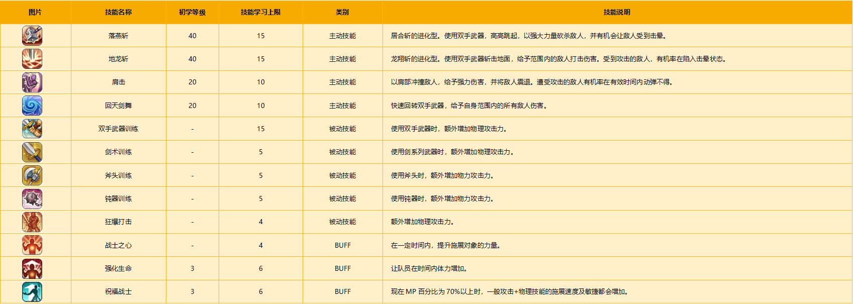 战士系技能
