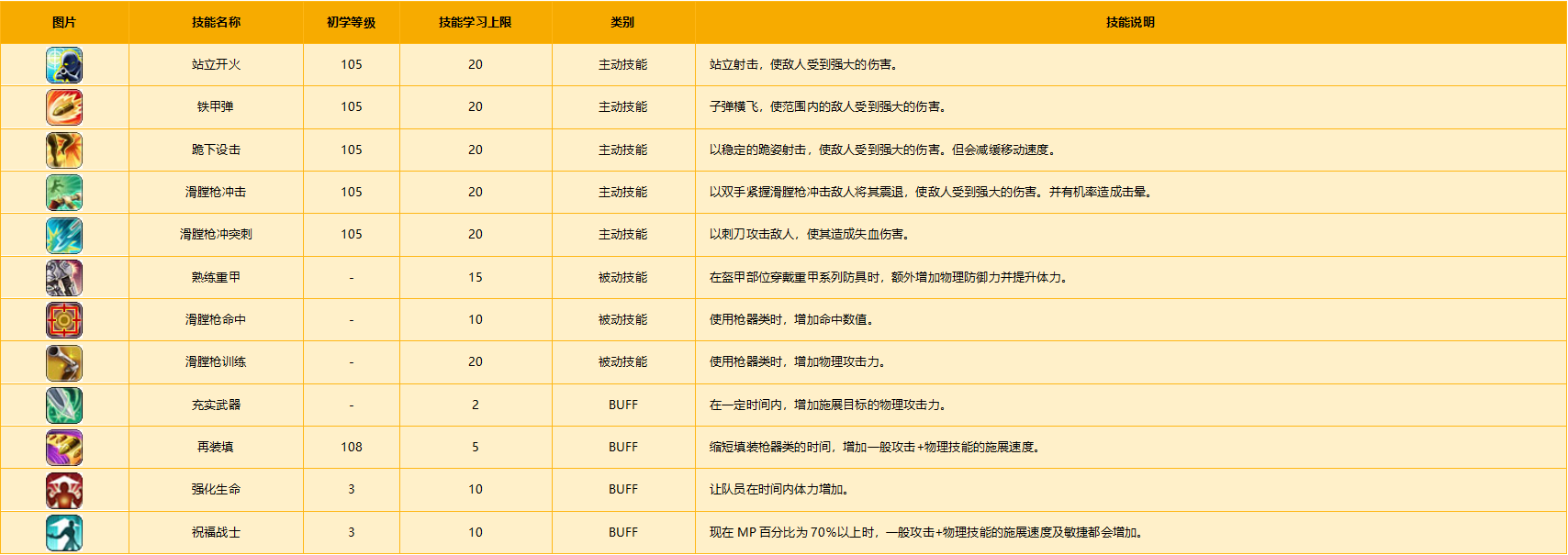 3.学习枪器系相关被动技能。