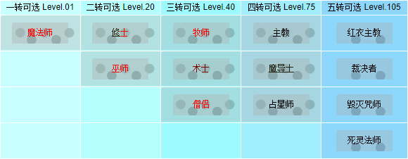 角色达到一定等级后,可以进行转职。20级时可以在该职业管理人处接受任务,完成任务即可转职。转职为新职业后,可使用的技能种类与最高等级都会增加,并且可以学习新职业的职业特定技能。